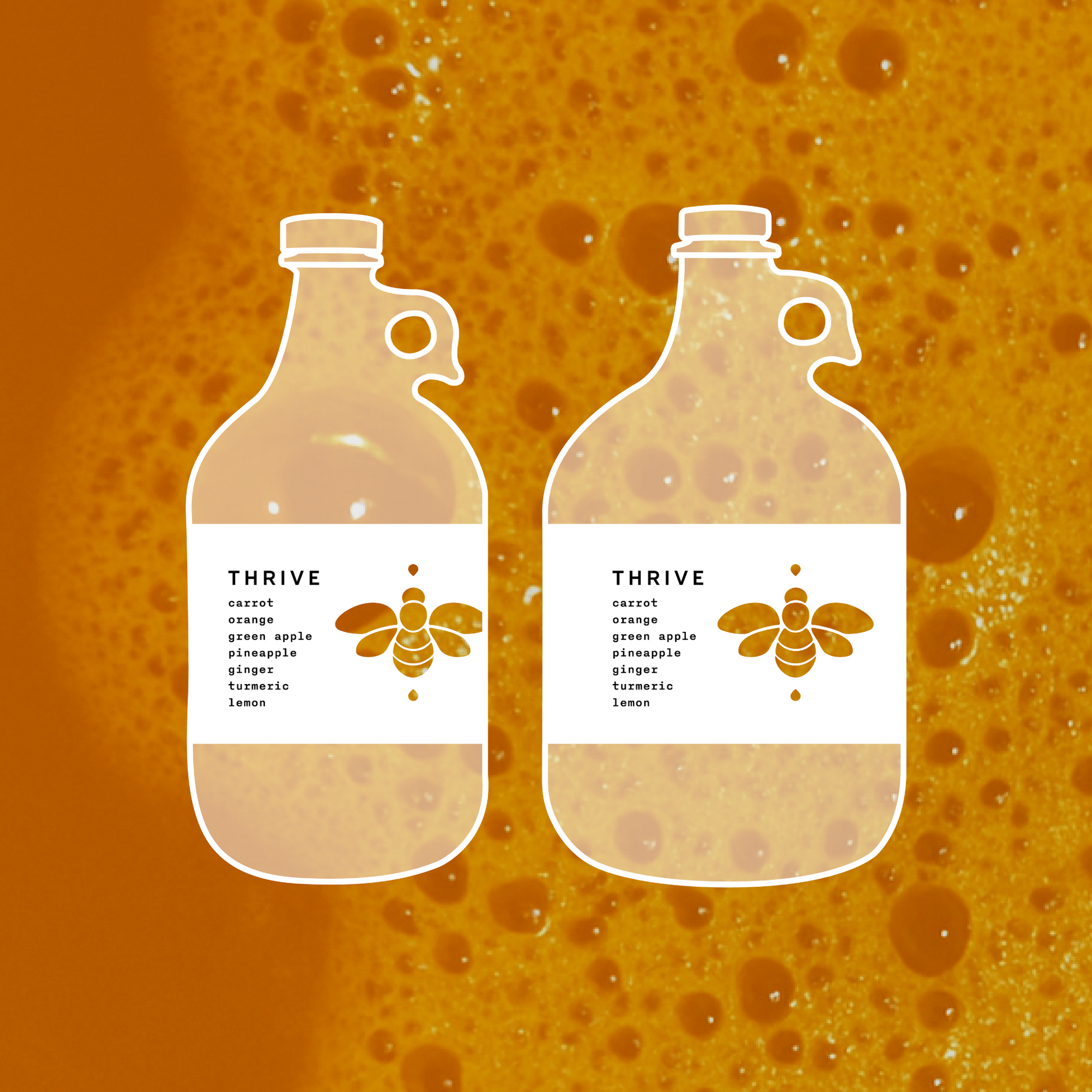Each growler is filled fresh to order in your choice of seven signature juices: Restore, Thrive, Rooted, Refresh, Replenish, Reset or Nectar.
